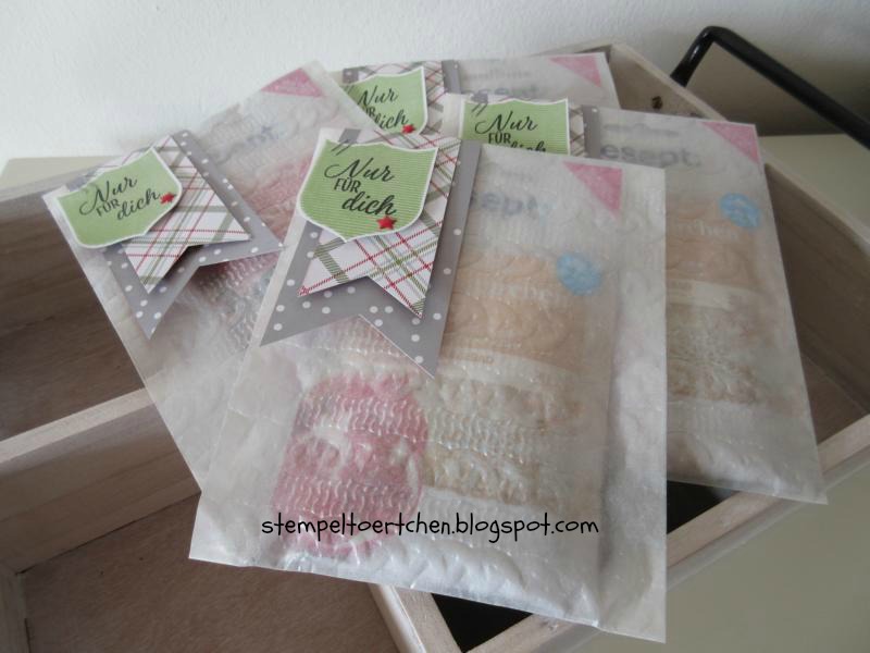 Heute habe ich geprägte Pergamintüten gefüllt mit einem